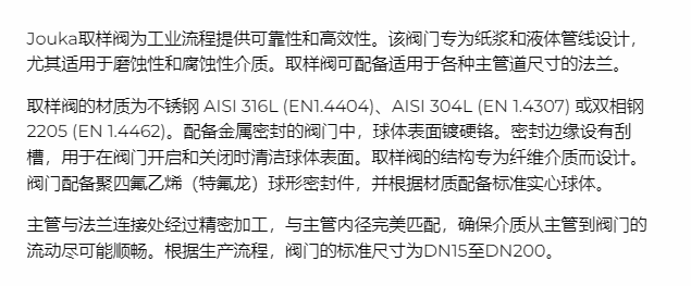 > JOUKA 取样阀