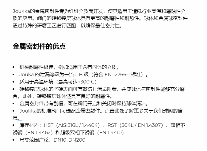 JOUKA 金属阀座球阀系列